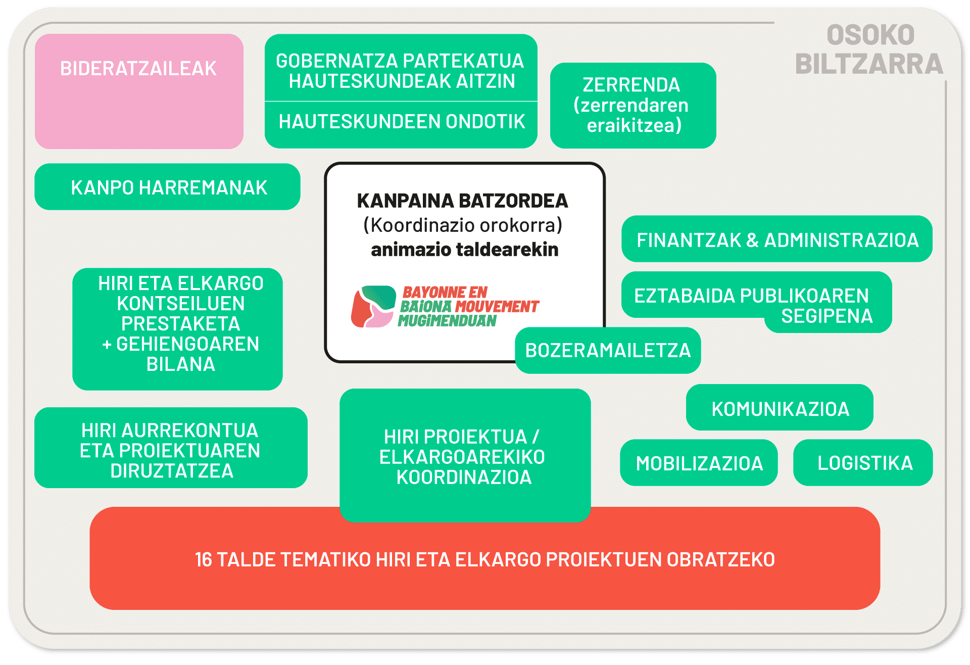 Antolaketa-modu honek adimen kolektiboa agerrarazten du eta gure ustez egokiena da gure lurraldearen trantsizio ekologiko, sozial eta kultura-aniztasuneko erronka handiei, eta bere biztanleriaren beharrei erantzuteko.