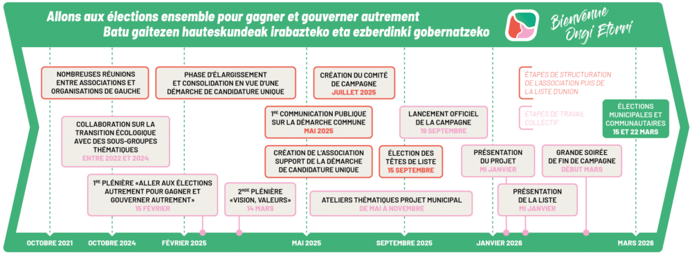 Initié dès 2022 par des associations et organisations politiques, notre mouvement s’est progressivement consolidé, élargi pour aboutir à la création en juillet 2025 d’une association porteuse d’une liste citoyenne et participative, résolument ouverte, rassembleuse des sensibilités de gauche dans leurs diversités.